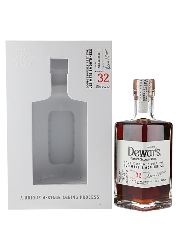 A 37.5cl bottle of Dewar's 32 Year Old Blended Scotch Whisky, finished in PX sherry casks and bottled as part of Double Double series.