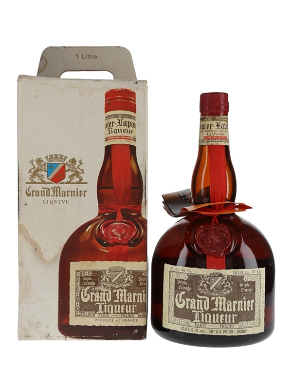 A litre bottle of Grand Marnier Cordon Rouge liqueur. This was bottled for the Hong Kong duty free stores, we estimate in the 1980s.
