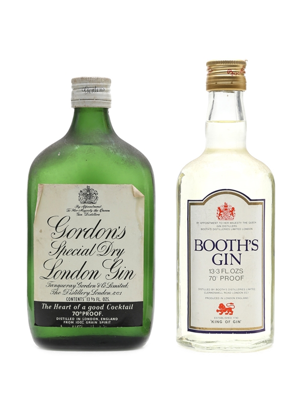 Booth's & Gordon's Gin Bottled 1970s 2 x 37.5cl / 40%