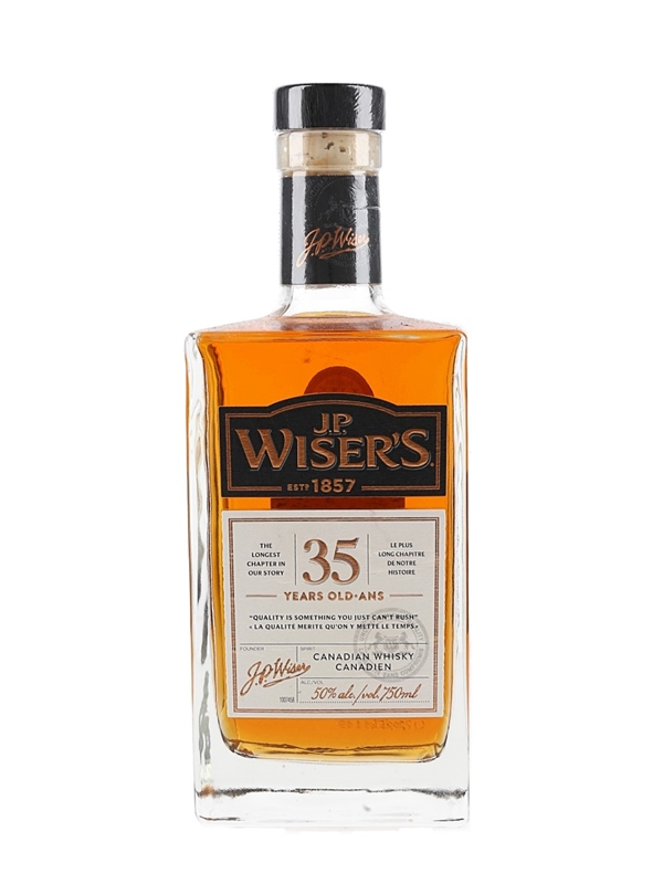 A bottle of J.P. Wiser's 35 Year Old Canadian Whisky.