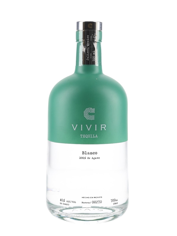A bottle of Vivir Tequila Blanco produced in Mexico. The bottling code indicates this was bottled in 2023.