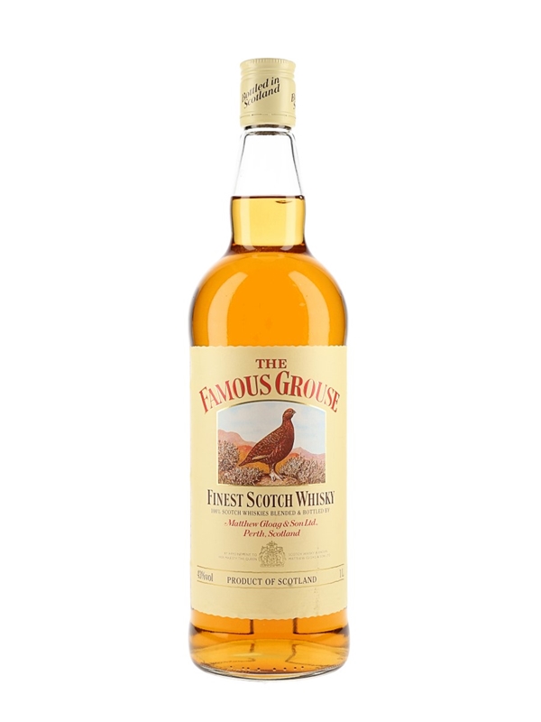 A litre bottle of The Famous Grouse Finest Scotch Whisky, produced by Matthew Gloag & Son Ltd. We estimate this was bottled in the 1990s.
