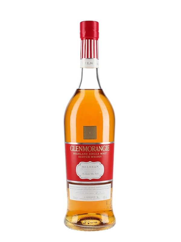 A bottle of Glenmorangie Milsean, the seventh release from Glenmorangie's Private Edition range. This was aged first in ex-bourbon barrels before an extra period of maturation spent in re-toasted red wine casks. Milsean is Gaelic for 'sweet things'.