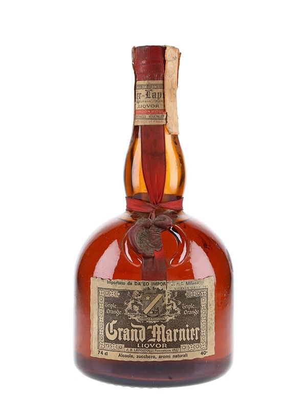 A 74cl bottle of Grand Marnier Cordon Rouge, an orange and Cognac liqueur from France. This was bottled for the Italian market and imported by Dateo Import, we estimate in the 1970s.