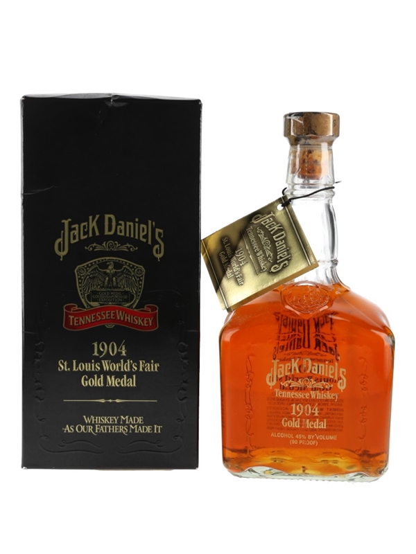 A bottle of Jack Daniel's released to celebrate the gold medal won at the St. Louis World's Fair in 1904. This is the first in the Gold Medal series.