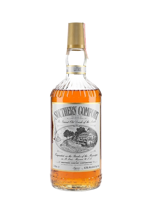 A litre bottle of Southern Comfort, The Grand Old Drink of the South. This was bottled for Duty Free stores, we estimate in the 1980s.