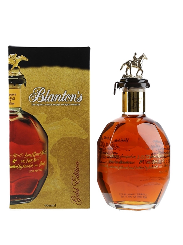A bottle of Blanton's Gold Edition Kentucky Straight Bourbon Whiskey.