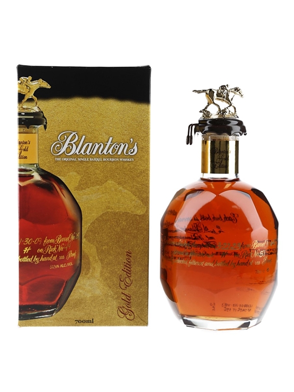 A bottle of Blanton's Gold Edition Kentucky Straight Bourbon Whiskey.