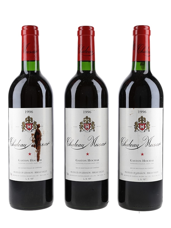 This lot contains three bottles of 1996 Château Musar from Lebanon.