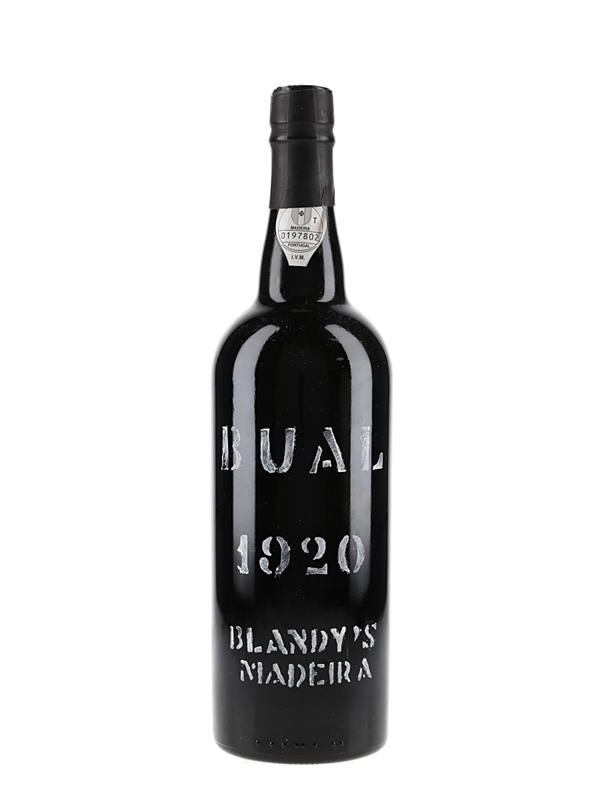 A bottle of 1920 Blandy's Bual Madeira, bottled in 2004 by the Madeira Wine Company.