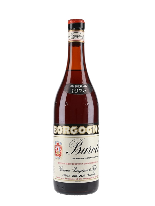 A bottle of 1973 Borgogno Barolo Riserva, produced and bottled by Giacomo Borgogno & Figli.