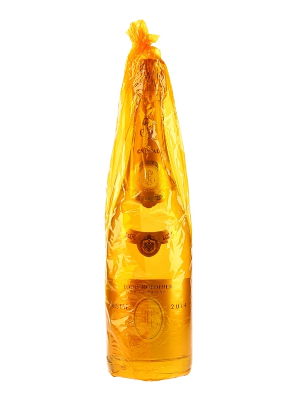 A bottle of Louis Roederer Cristal from the 2014 vintage. A blend of 60% Pinot Noir and 40% Chardonnay.