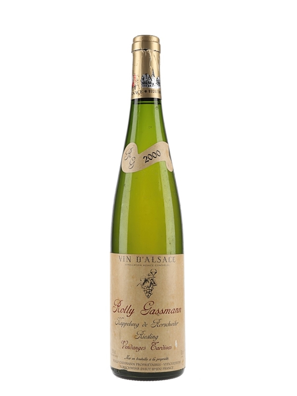 A bottle of 2000 late harvest (or Vendanges Tardive) Kappelweg de Rorschwihr Riesling from Alsace producer Rolly Gassmann, who are located in the town of Rorschwihr near Ribeauvillé, farming 50 hectares of vineyards.