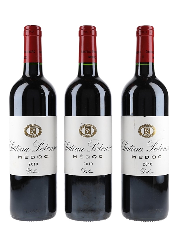This lot contains three bottles of 2010 Château Potensac from the Médoc appellation in Bordeaux, a 76 hectare estate owned by the Delon family for over two hundred years. It is produced using the same team of pickers and much of the same expertise as 'Super Second' growth, Léoville Las Cases.