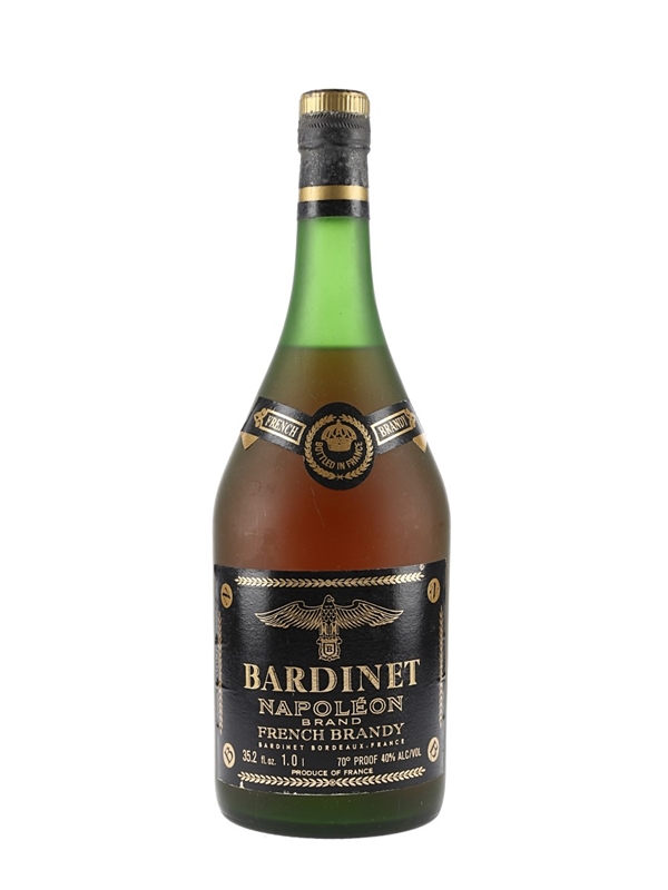 A litre bottle of Bardinet Napoléon French Brandy, produced in France. We estimate this was bottled in the early 1970s to early 1980s.