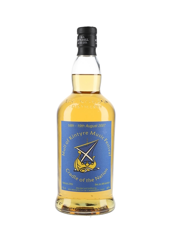 A bottle of Mull Of Kintyre Music Festival 1992 Blended Scotch Whisky. This was distilled in 1992 and bottled for the Mull of Kintyre Music Festival in August 2007.