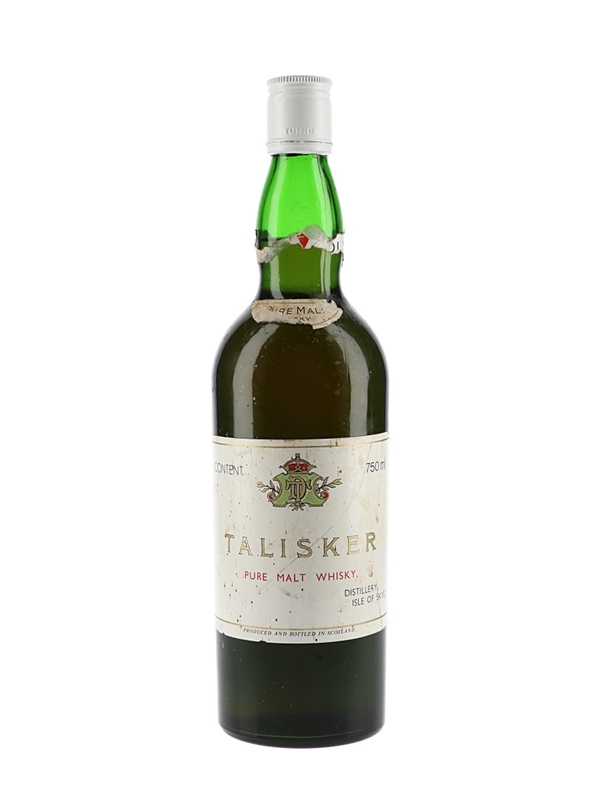 A bottle of Talisker Pure Malt Whisky. We estimate this was bottled in the late 1960s. Please note there is no %ABV stating on the label and the age statement part of the label is missing, we believe this is an 8 Year Old Talisker.