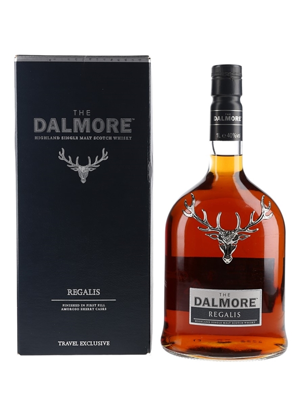 A litre bottle of The Dalmore Regalis Highland Single Malt Scotch Whisky, finished in amoroso sherry casks and bottled as part of the Fortuna Meritas Collection.