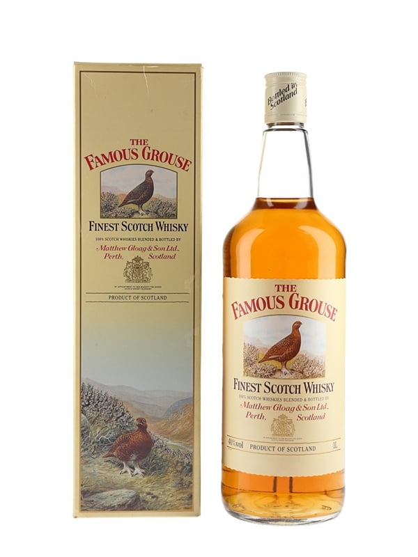 A litre bottle of The Famous Grouse Finest Scotch Whisky, produced by Matthew Gloag & Son Ltd. We estimate this was bottled in the 1990s.