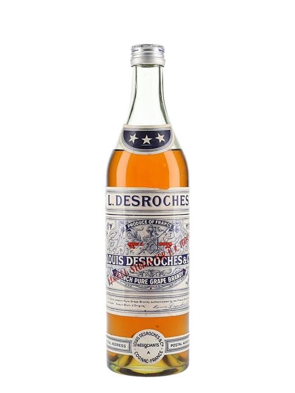 Louis Desroches 3 Star French Brandy Bottled 1970s - Naafi Stores 68cl