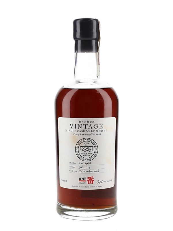 A bottle of Karuizawa that was distilled in December 1978 and matured in an ex-bourbon cask. It was bottled in July 2014 by Number One Drinks Company.
