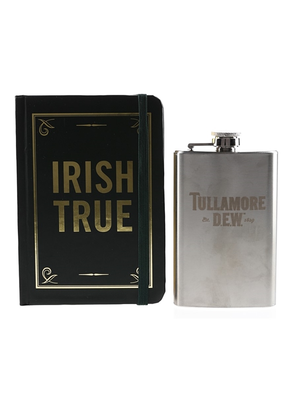 Tullamore Dew 'Irish True' Hipflask presented in a book packaging with gilded edges.