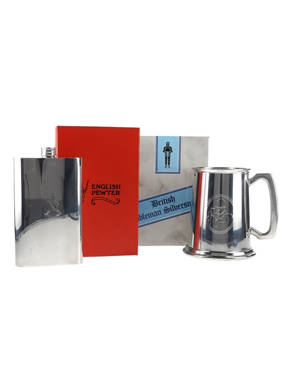 British Nobleman Pewterware Tankard & English Pewter Hip Flask Stainless Steel 15cm x 8.5cm