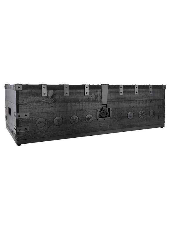 A limited edition branded Game Of Thrones chest, specially designed to contain the original eight releases of Game Of Thrones single malt whisky from Diageo, with all Houses (from Tully to Tyrell and the Night's Watch etc) represented by a different distillery. The weathered wooden display chest is adorned with the sigils of each Westeros house. This is number 047 of 205 produced.