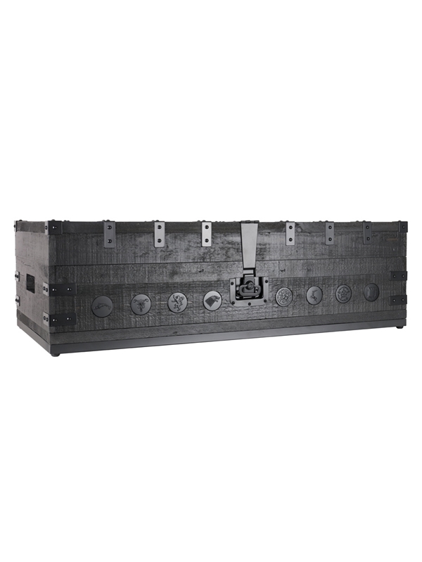 A limited edition branded Game Of Thrones chest, specially designed to contain the original eight releases of Game Of Thrones single malt whisky from Diageo, with all Houses (from Tully to Tyrell and the Night's Watch etc) represented by a different distillery. The weathered wooden display chest is adorned with the sigils of each Westeros house. This is number 051 of 205 produced.