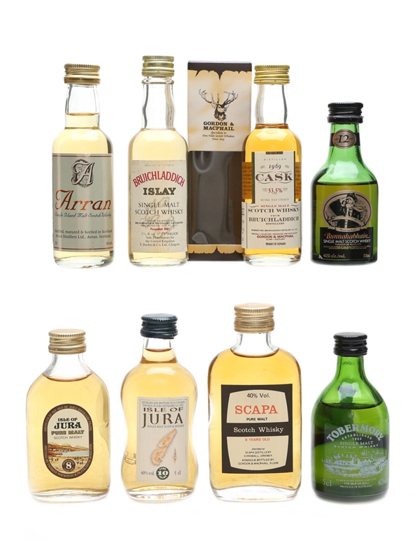 Islay & Island Scotch Whisky Miniatures Bruichladdich 1969, Bunnahabhain, Scapa, Arran, Isle of Jura, Tobermory 8 x 5cl