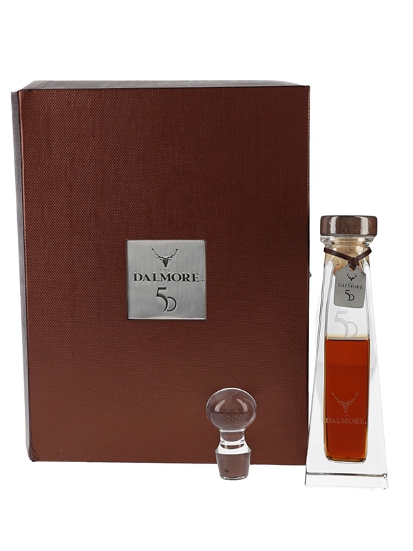 A 10cl miniature bottle of The Dalmore 50 Year Old Single Highland Malt Scotch Whisky. This was matured in various sherry casks before bottling at 52.8% ABV.