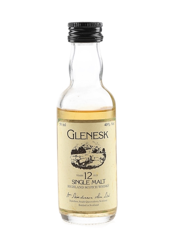 A miniature bottle of Glenesk 12 Year Old Single Malt Highland Scotch Whisky. We estimate this was bottled in the 1980s.