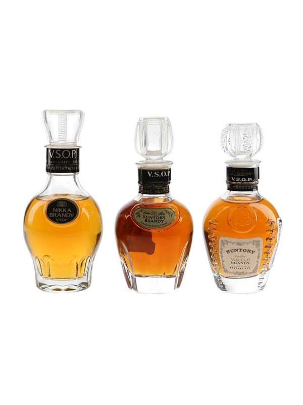 This lot contains three miniature bottles of Suntory VSOP Brandy.