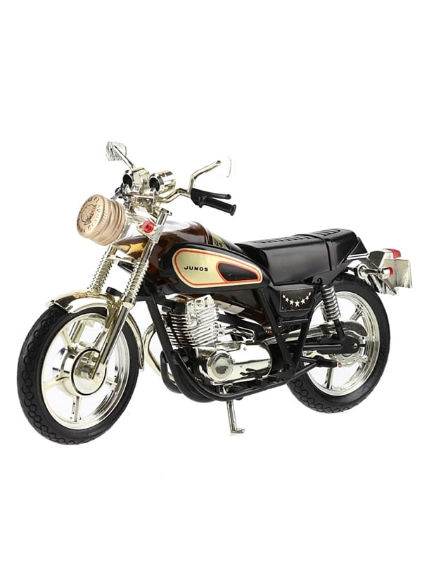 A 2.5cl miniature bottle of La Priere Junos Brandy presented in a plastic model of a vintage Bike. We estimate this was bottled in the 1990s.