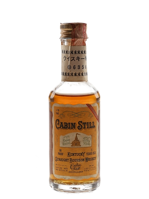 A miniature bottle of Cabin Still 5 Year Old Kentucky Straight Bourbon Whisky. We estimate this was bottled in the 1970s.