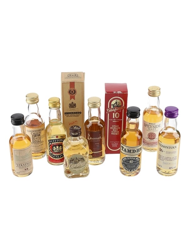 This lot contains 10 miniature bottles of Speyside Single Malt Scotch Whisky.