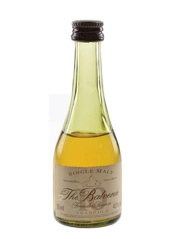 A miniature bottle of The Balvenie 10 Year Old Founder's Reserve Single Highland Malt Scotch Whisky. We estimate this was bottled in the 1980s.
