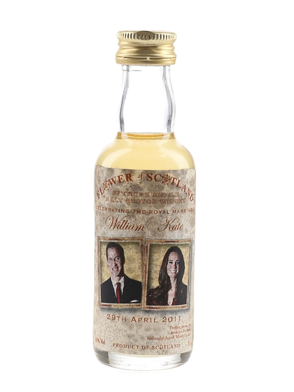 A miniature bottle of Speyside Single Malt Scotch Whisky from the Flower of Scotland series, this was released to celebrate the royal marriage of William and Kate.
