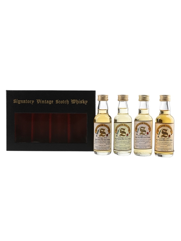 The Signatory Vintage Whisky Set contains four miniature bottles of Single Malt Scotch Whisky: