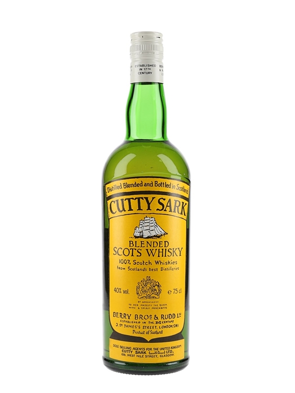 A bottle of Cutty Sark Blended Scots Whisky, produced by Berry Bros & Rudd. We estimate this was bottled in the 1980s.