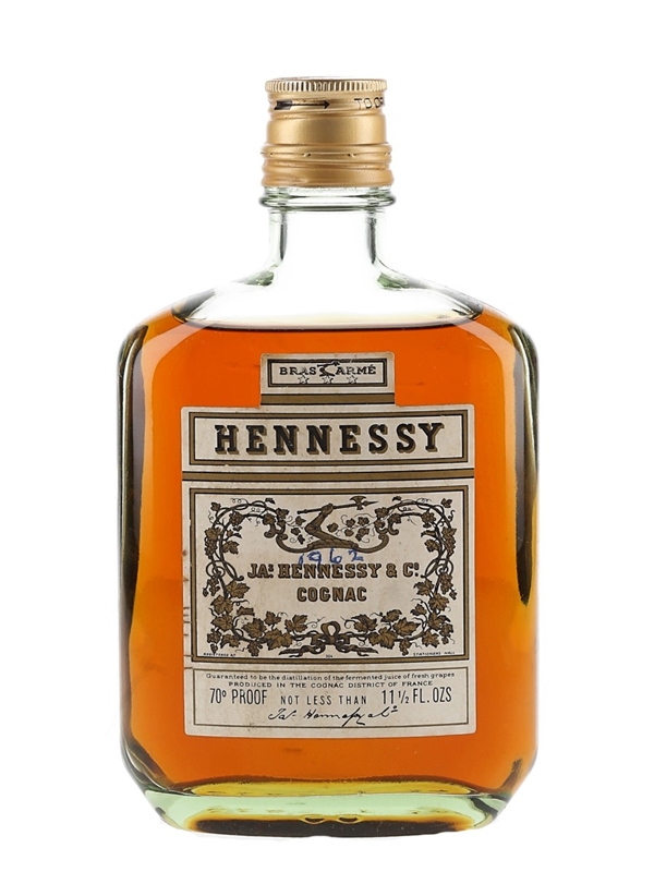 A 35cl bottle of Hennessy Bras Armé, named for its logo, the 'armed arm'. This is sealed with a Securo-Cap style closure. We estimate this was bottled in the early 1960s.
