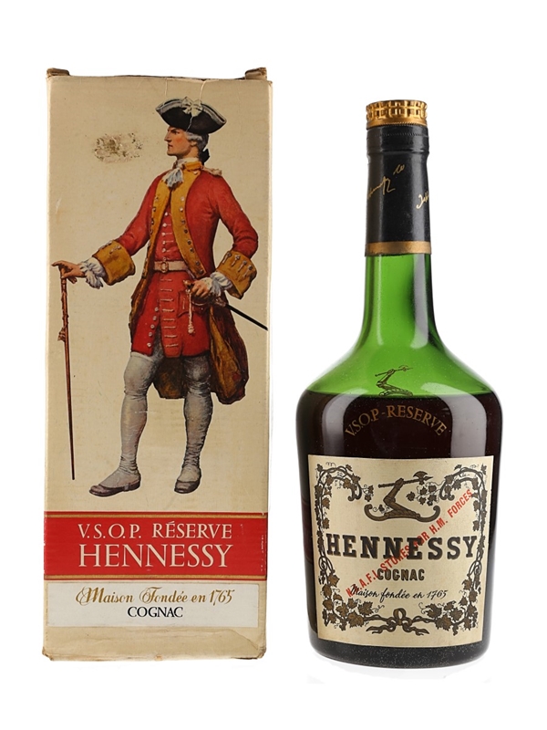 A 68cl bottle of Hennessy VSOP Reserve Cognac. This was bottled for NAAFI Stores for HM Forces, we estimate in the 1970s.