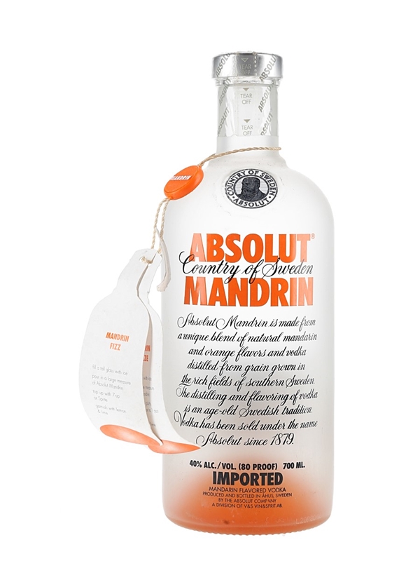 A bottle of Absolut Mandarin Vodka from Sweden.