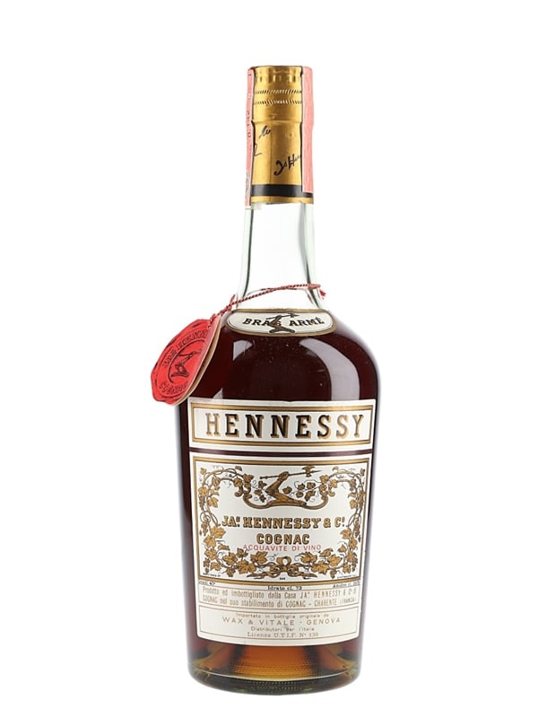 A bottle of Hennessy Bras Arme, named for its logo, the 'armed arm'. This was imported to Italy by Wax & Vitale, we estimate in the 1960s to 1970s.