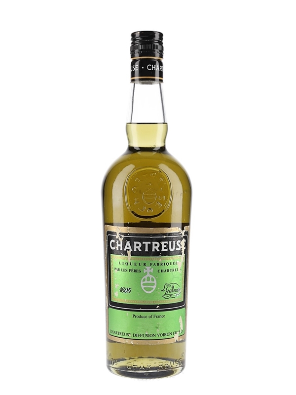 A bottle of green Chartreuse liqueur, produced in France. We estimate this was bottled between 1982 to 1992.