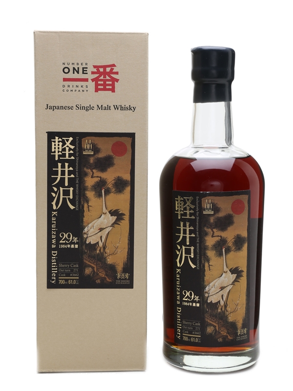 A bottle of Karuizawa 1984, matured in a single sherry cask and bottled at 29 years old. This was bottled for The Whisky Exchange and Shinanoya.