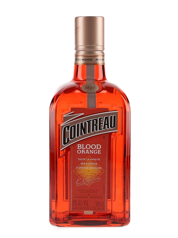 A 50cl bottle of Cointreau Blood Orange Liqueur. Originally launched for travel retail, this special-edition bottling from Cointreau adds Corsican blood oranges to the sweet and bitter ones found in classic Cointreau.