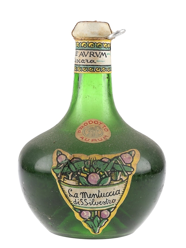 A bottle of Aurum La Mentuccia Di S Silvestro Liqueur from Italy. We estimate this was bottled in the 1950s.