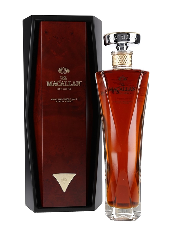 A bottle of The Macallan Oscuro Highland Single Malt Scotch Whisky from The 1824 Collection. This was drawn exclusively from sherry seasoned oak casks filled between 1987 and 1997, a high proportion of which are first fill.