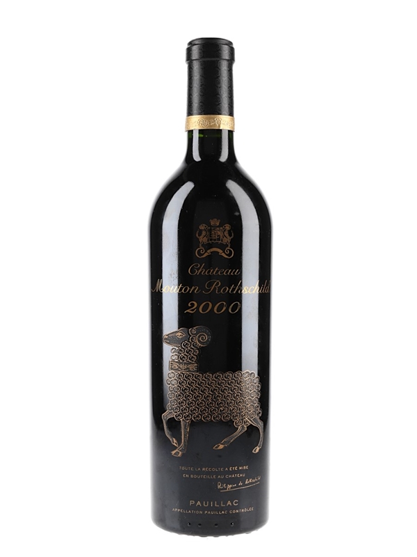 A bottle of 2000 Château Mouton Rothschild from Bordeaux's Pauillac appellation.